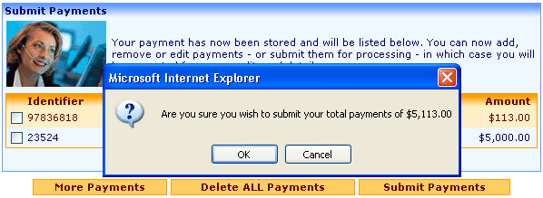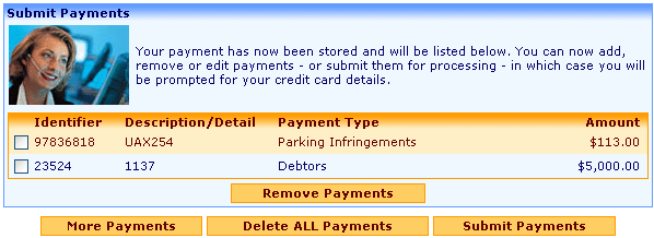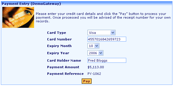 Credit Card PaymentThe final step once the Payments have been submitted ? is to provide credit card details to fulfill the required payment.