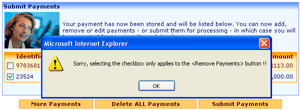 Once the credit card details are provided and the <Pay> button is selected ? the payment will be attempted to be processed. If the credit card payment fails then the Payments will not be processed, and can be ?re-called? by reselecting the Payments | New Payment option.